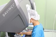 産婦人科では、令和2年より「子宮筋腫などの良性子宮疾患における子宮摘出術」において実施しています。従来は、開腹もしくは腹腔鏡で行っていた手術を「ダ・ヴィンチ」システムを使うことで出血量が少なく患者さんへの負担が少なくなることが期待されています。